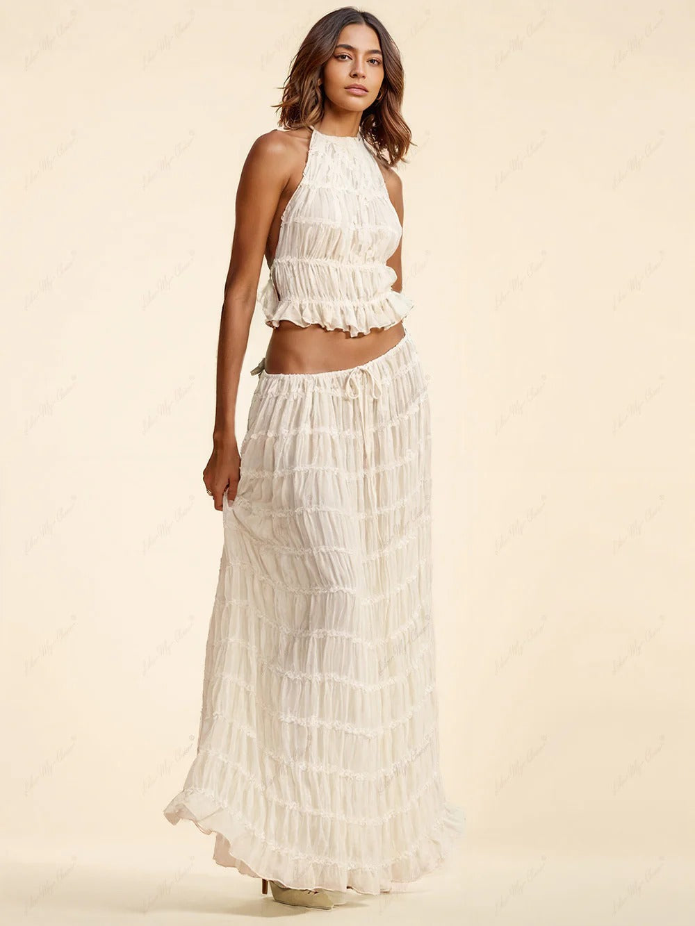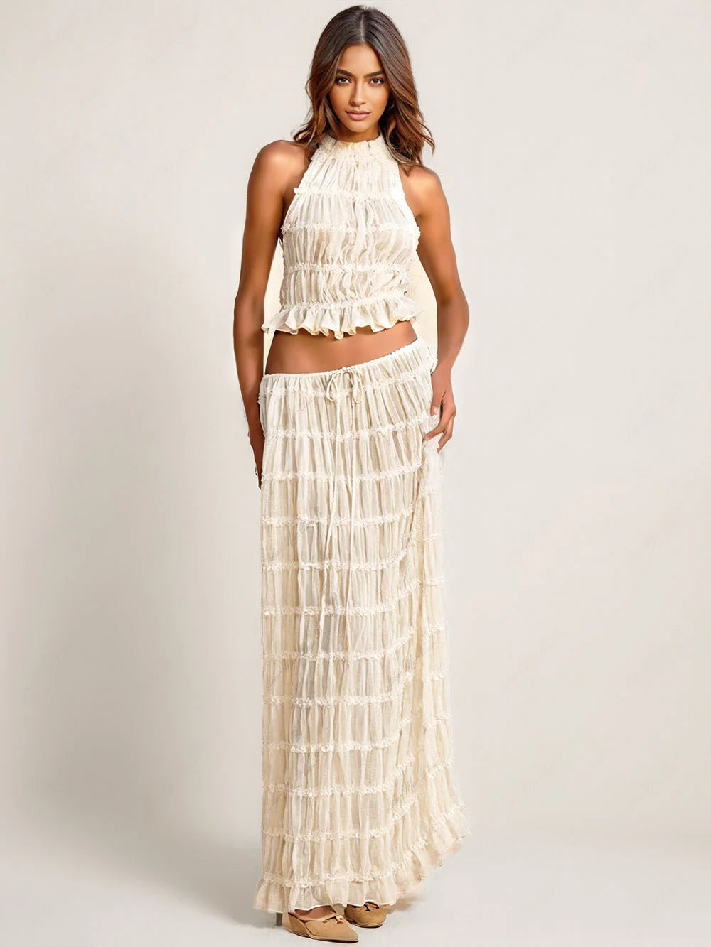 Parfait pour les journées à la plage ou les cocktails sur les toits, cet ensemble chic allie confort et sophistication.